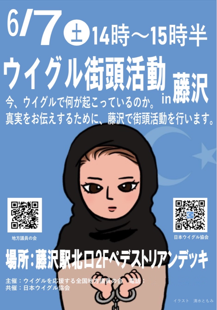 内容:進行中のウイグルジェノサイドの実態に関するチラシやマンガ冊子の無料配、参加者によるマイクリレー