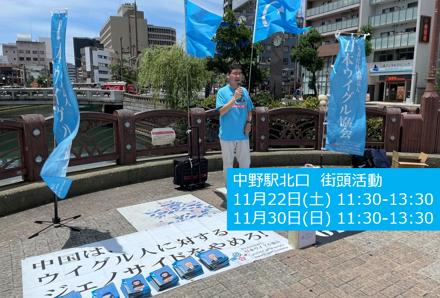 内容:進行中のウイグルジェノサイドの実態に関するチラシやマンガ冊子の無料配、参加者によるマイクリレー