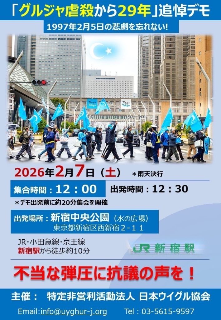 グルジャ虐殺を追悼し、ウイグルジェノサイドに抗議するデモ行進を行います。