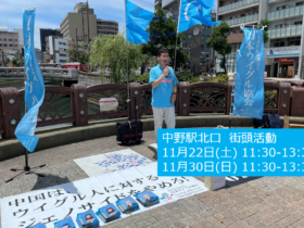 以下の通り、中野駅前で街頭活動を開催します。 参加、応援、拡散よろしくお願いします。 場所:中野駅北口(東京都中野区中野五丁目31-1) 日時: 2025年11月22日(土)11:30-13:30 2025… -